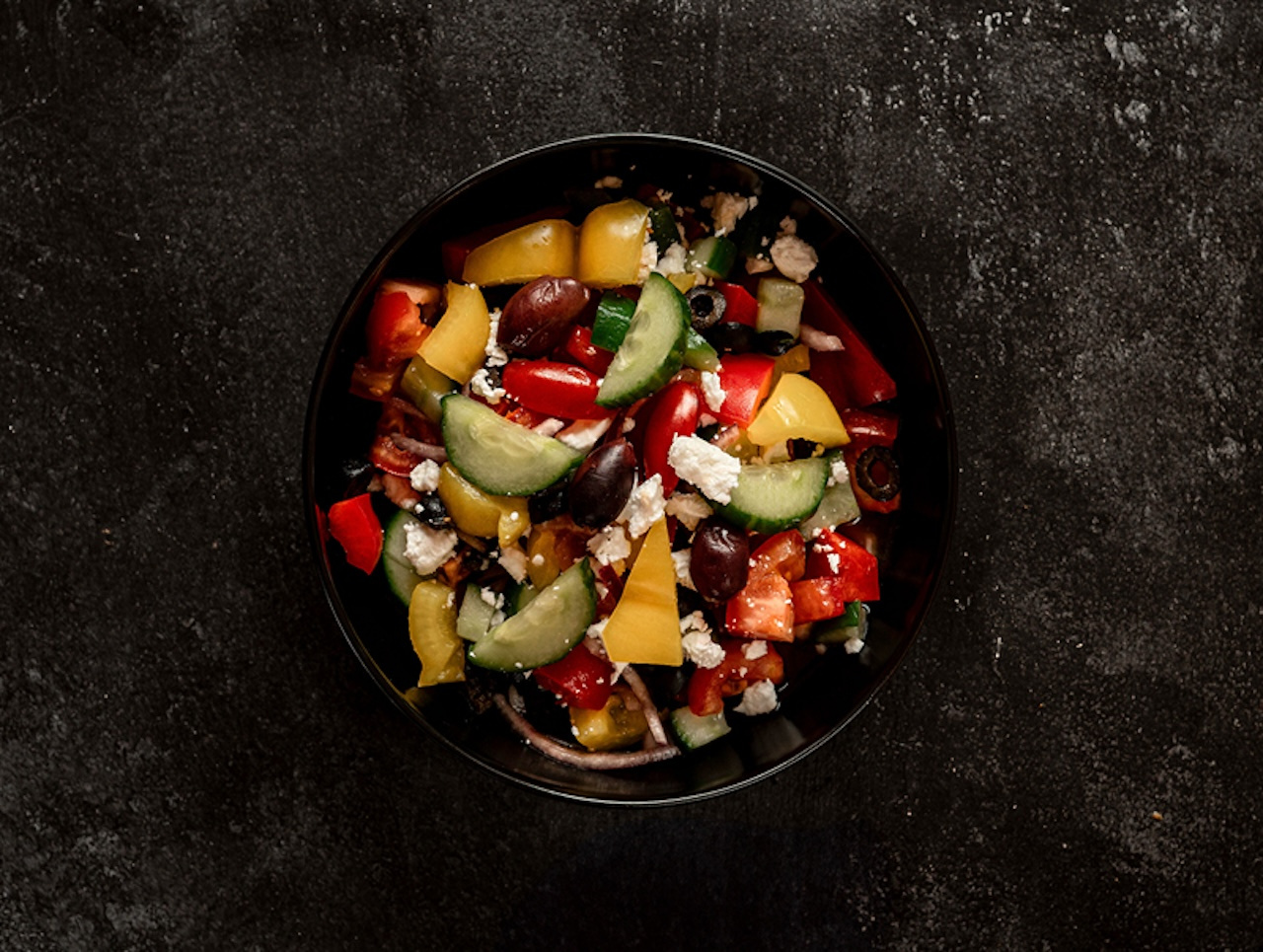 Svěží řecká klasika, která nikdy nezklame. Kombinace šťavnatých rajčátek, salátové okurky, kapie a římského salátu doplněná výraznými olivami a sýrem feta vytváří dokonale vyváženou chuť.