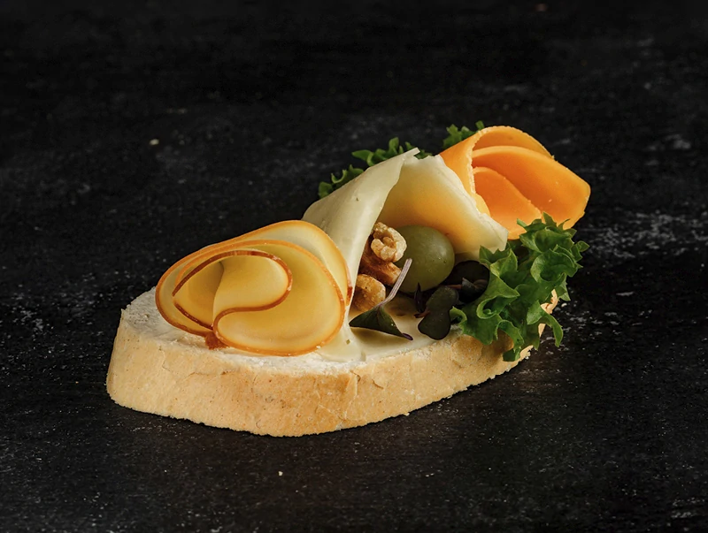 Lahůdka pro všechny, kdo milují poctivou sýrovou chuť. Na tradiční vece s máslem servírujeme hned tři druhy sýra – jemný Eidam, výrazný uzený Eidam a plný Cheddar, které spolu vytváří krásně vyváženou kombinaci.