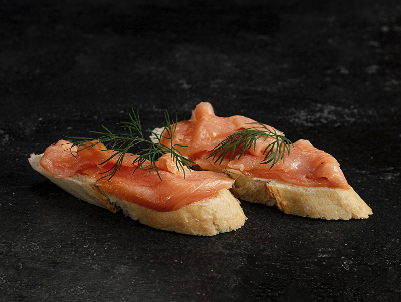 Lososová dvojhubka je elegantní a svěží mini pochoutka, která se skvěle hodí jako lehké pohoštění na rodinné oslavy, firemní akce i přátelská setkání. Na francouzské světlé bagetce roztíráme jemné pomazánkové máslo a pokládáme plátky kvalitního uzeného lososa. Snítka čerstvého kopru dodá celé dvojhubce vůni i lehký nádech exkluzivity.